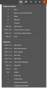 These key combinations allow users to quickly perform common actions such as replying to messages, moving emails, or navigating folders without relying on a mouse.
